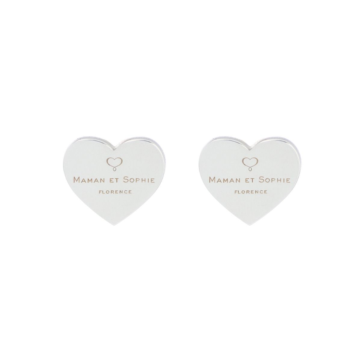 Coppia di orecchini a lobo cuore con inciso logo Maman et Sophie realizzati in argento 925 ad alto spessore e resistenza.