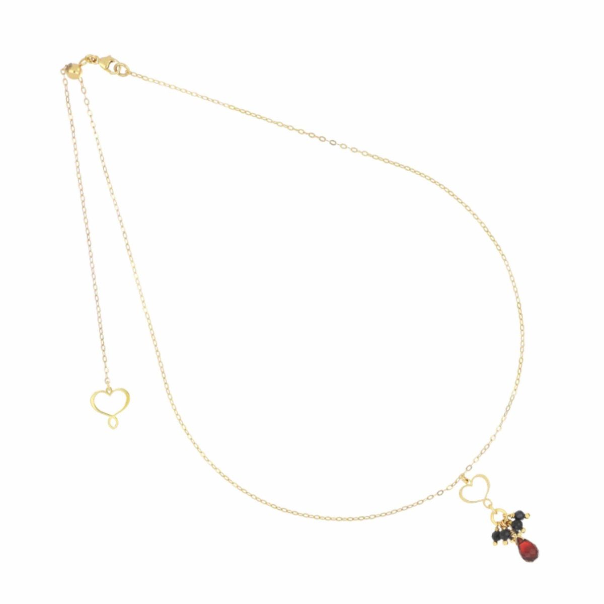 Presenta cuore Maman, pietre di zaffiro blu sfaccettato e una goccia di granato rosso pendente.