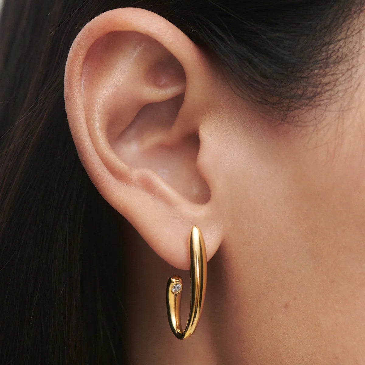 Orecchini a cerchio moderni aperti impreziositi da zirconi bianchi rotonda