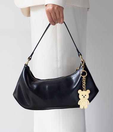 Portachiavi in acciaio placcato in oro fino mediante ionizzazione, composto da una catena singola e da una catena con ciondolo in acciaio a forma di orso.